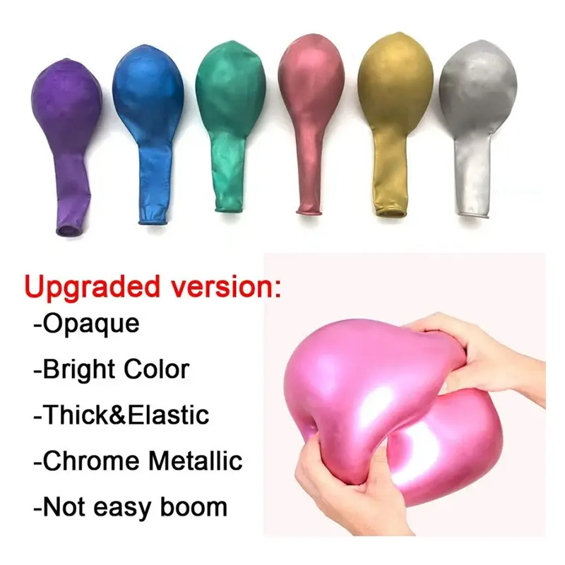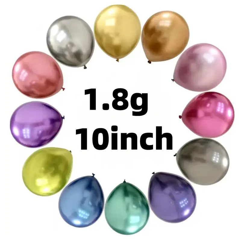 Povrch kovových balónů 1,8 g je potažen kovovým povlakem nano-úrovně pomocí vakuového iontového rozprašování, rovnoměrně pokrývá latexový povrch s 0,02 mm tlustým hliníkem-magneziem slitinovým povlakem, který zajišťuje lesk (odrazivost ≥ 95%) a zabraňuje prášku a loupání s tradičními procesy stříkání. Po 50 třeních testů nedošlo k ztrátě barvy.