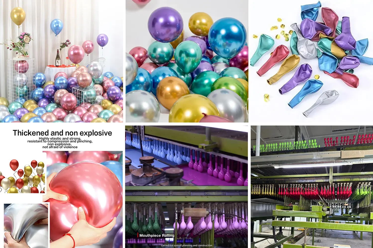 Známá továrna: Přijímá moderní produkční režim a investuje do několika plně automatických výrobních linek balónů a každý den produkuje více než milion vysoce kvalitních 10 palcových chromových latexových balónů, což plně zaručuje stabilní a včasné dodávání velkých objevených objednávek.