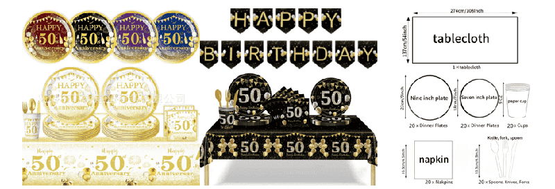 Sada jednorázového nádobí k 50. narozeninám obsahuje 7palcový dezertní talíř, 9palcový talíř hlavního jídla, savý ubrousek, potravinářský plastový nůž, vidličku a lžíci. 7palcový papírový talíř je vhodný na dorty a svačiny a 9palcový papírový talíř pojme jídelní nádobí. Ubrousky jsou měkké a šetrné k pokožce, odolné vůči absorpci vody, plastové nože, vidličky a lžíce jsou odolné, bezpečné a netoxické a lze je ihned po použití zlikvidovat, čímž šetříte problémy s čištěním, čas a práci. Naše sada dekorace balónkového nádobí k 50. narozeninám je vhodná na narozeninové oslavy, výročí, odchody do důchodu a další zvláštní příležitosti. Věnujte plnou hru své kreativitě a použijte tyto dekorace v různých scénách, aby byla jakákoliv aktivita úžasnější a nezapomenutelnější.