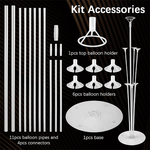 Stojan podlahy balónu se skládá ze základny, několika šálků, plastových trubek různých délek, kloubů a nejvyššího plynového klubu. Po shromáždění lze balón opravit tak, aby vytvořil dekorační model plochy nebo pozemního balónu, vhodný pro párty, svatbu, oslavu a další rozložení scény. Balónový stojan je výhodné pro stavbu trojrozměrného a krásného balónového obleku.