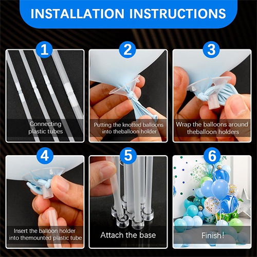 Jak je znázorněno na obrázku 2 a obrázek 3 níže, nejprve vydělte různé podlahové podlahy do kategorií a určete polohu sestavy každého příslušenství. Poté je plastová trubice připojena kloubem, potom se do otvoru podpěry balónu vloží vázaný balón, uzel balónu je zkroucen a zatažen do druhé díry kloubu a nakonec je podpora balónu připojena k trubici a poté je druhý konec trubice připojen k základně leskem. Krásný stojan na balón je hotový. Kromě toho lze snadno rozebrat sestaveného tažného pólu balónku a lze jej použít jako hračka držáku držáku balónu pro děti, realizovat více použití jednoho pólu a flexibilní použití. Kromě toho může být sestavený podlahový stojan na podlahu také použit s barevnými světly. Pokud máte rádi barevná světla, můžete si zakoupit barevná světla při nákupu podlahového stojanu, aby vaše aktivity byly barevnější!