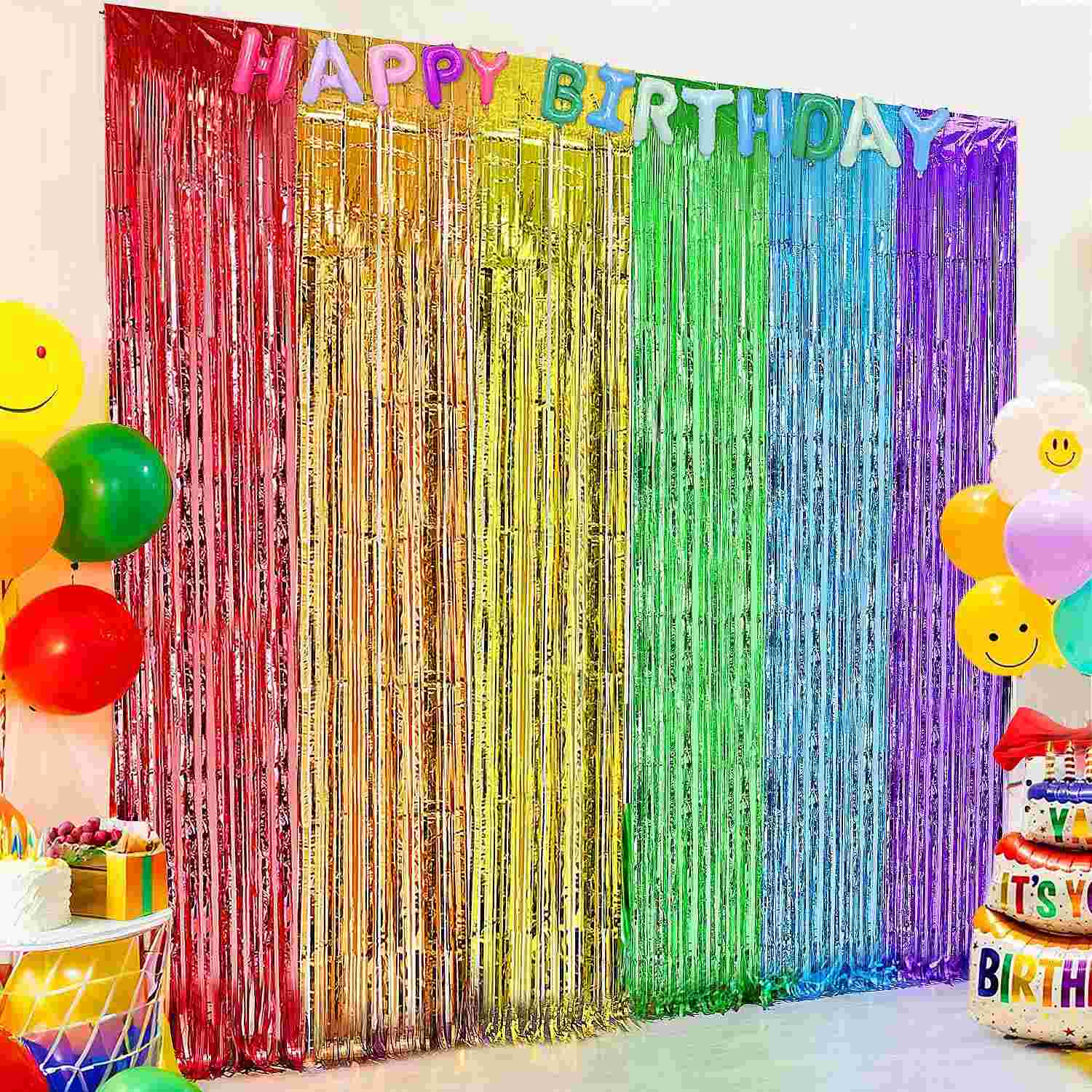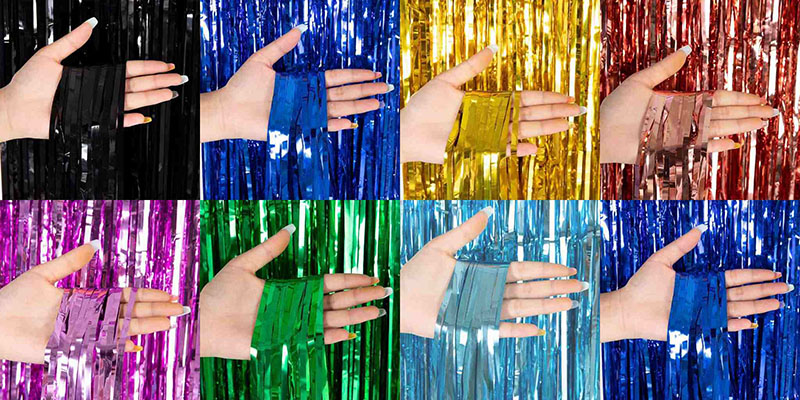 Módní dekorace na fólii na narozeninovou párty se vyrábí tkaním kovových drátů s vysokou hustotou. Skvěle visí díky silnému závěsu. Jemně s nimi zatřeste a potečou jako vodopád. Vypadá to tak krásně. Má mnoho různých barev na výběr. Vybrat si můžete šampaňské zlato, růžové zlato, stříbro a další. Pokud chcete, můžete také získat styly barevných bloků. Vyhovuje potřebám přizpůsobení barev různých scén.