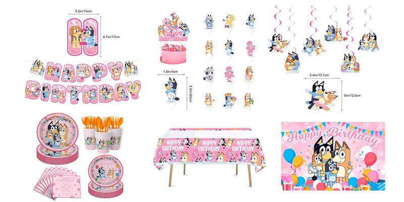 Modré balónky jsou k dispozici v různých materiálech, jako je latex a fólie.Latexové balónkyjsou měkké a zářivě barevné. Sada 12palcových latexových balónků pro psa Bluey,s potiskem Bluey a dalších znaků, je k dispozici v modré, růžové, oranžové a dalších barvách.Fóliové balónkypřicházejí v různých tvarech, včetně Bluey se zkříženýma nohama, mávajícího Bluey a sedící bingo. Tyto výrobky jsou odolné a nelze je snadno rozbít. Bluey balón hodnocení zahrnujípapírové bannery, papírové toppery a papírové nádobí. Nabízíme přizpůsobené sady balónků Bluey, které poskytují více možností pro party dekorace prostřednictvím personalizovaných kombinací balónků a příslušenství k balónkům.