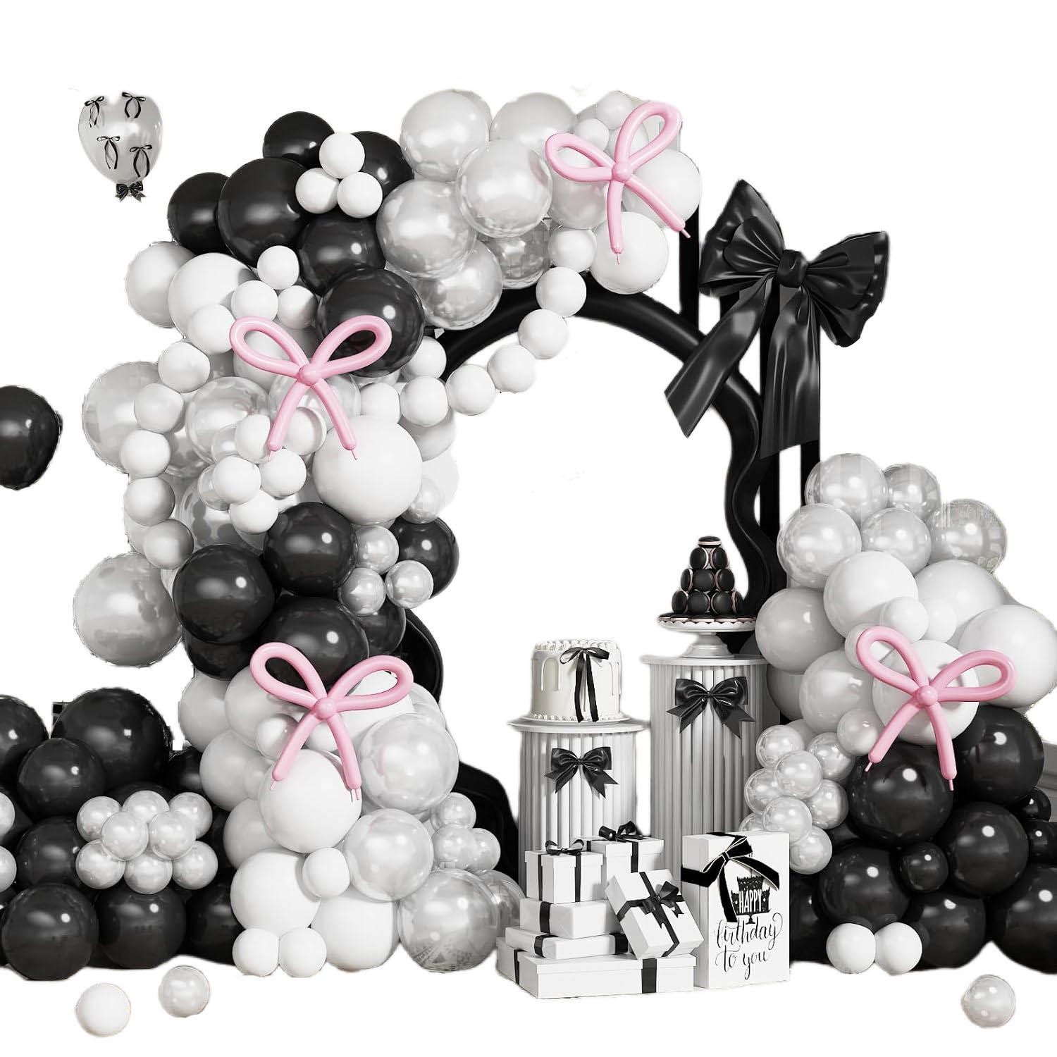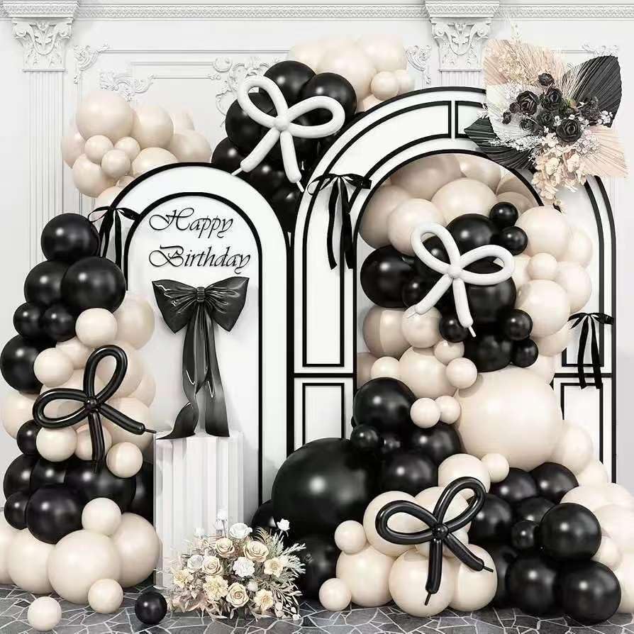 Každý balíček obsahuje pokyny pro tento módní bílý a černý balón arch girland. Tato snadno udržovatelná černý a bílý balónkový oblouk je vyroben z vysoce kvalitního latexu, tlustého a odolného pro dlouhodobé používání. Je to bezpečné pro dospělé i děti. Je nafukovací a naplněný heliem. Tato sada Black Birthday Balloon obsahuje vše, co potřebujete k vytvoření vysoce kvalitního balónového oblouku nebo věnec, což usnadňuje sestavení profesionálně vyhlížejících balónových dekorací bez potíží s jejich sestavováním. Design modelování Black Bow Balloon určitě vytvoří ohromující set girlandským věšákem Black Bow a přidá do jakékoli události nádech sofistikovanosti.