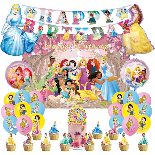 Tyto doplňky pro princezny Disney se skládají z banneru Happy Birthday Banner, dortového vršku, latexového balónku s potiskem princezny Disney, vršku na košíčky. Naše sada ozdobného nádobí pro narozeninovou oslavu princezny Disney má světlé barvy a roztomilé vzory. Materiál je tlustý a není snadné jej poškodit. Je vyrobena z ekologických a netoxických materiálů. Ať už jej používají děti nebo dospělí, je 100% bezpečný. Talíře, kelímky a ubrousky v této sadě jsou vyrobeny z ekologického, biologicky rozložitelného papíru, který může zajistit, že dekorace v sadě zůstanou v dobrém stavu během oslavy lásky k události. Díky našemu personalizovanému designu si kombinaci balónků, transparentů a dortových vršků jistě zamilují milovníci princezen a překvapí vaše děti, protože to bude princezna, která bude vaše děti vždy doprovázet.