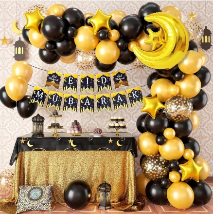 Sady Garland Girland Balloon Ballon Balloon Ballon Balloon Ballon obvykle obsahují různé předměty, jako jsou latexové balónky s tematikou EID a balónky fólií různých velikostí a barev, kulisy, uchyňské uklady, rybářské linky, balónové řetězy, které mají přednost a plnící se s eid-fitr, a to, co je potřeba, a to, co je potřeba, a potřeba je třeba usilovat o eid a vzduchové čerpadly atd. různé potřeby spotřebitelů.