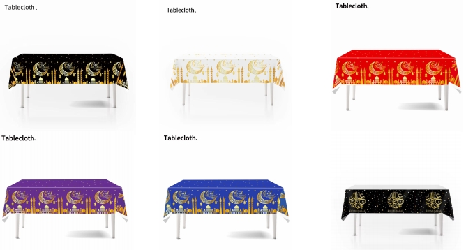 Nově představená souprava Eid Al-Fitr Balloon přidává k předchozím základním náhradním dílům látku, ubrus a další produkty. Na pozadí látky je navrženo s klasickými prvky Eid Al-Fitr, jako je zlacený půlměsíc, arabský „Eid Mubarak“ a Lonickera Japonica Interweave. Barva pozadí je měkká bílá nebo světlá barva velblouda, která si nejen zachovává posvátný pocit festivalu, ale také integruje teplou atmosféru rodinného shromáždění. Je zavěšen na zdi v obývacím pokoji, vstupu nebo do oblasti činnosti nákupního centra, stává se vizuálním centrem scény bez komplikované instalace. Nově přidaná ubrus je vyrobena z olejového a vodotěsného materiálu PE oleje, se symetrickými geometrickými liniemi vytištěnými na povrchu a jemné střapce rozložené na okrajích. Je položen na jídelní stůl, přihlašovací stůl nebo jídelní stánek. Může se nejen vypořádat s polévkovými a dezertními skvrnami na večírku, ale také jeho slavnostní vzory se mohou opakovat s dekoracemi, jako jsou balónové řetězy a vlajky, takže rozložení celého místa je integrováno-od balónového garlandu ve vzduchu detaily desktopu.
