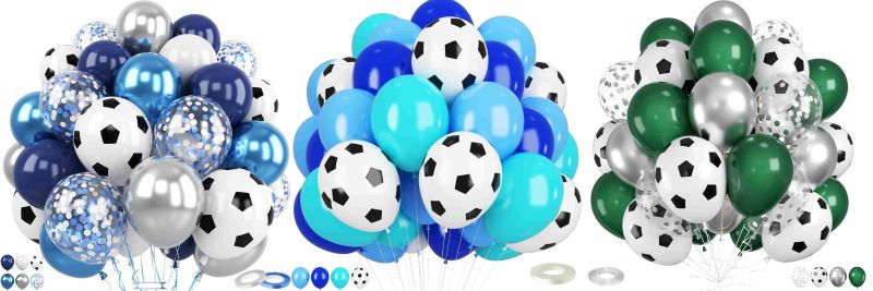 1. Když si přizpůsobíte sady balónků, stačí použít zelené nebo modré balónky a nějaké položitfotbalové balóny s potiskem, pak se ukázalo, že je to velmi pěkná sada jako na obrázku níže: