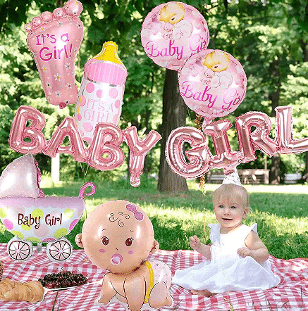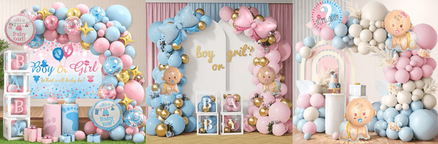 Základní souprava balónu je spojena hlavně se dvěma hlavními barvami růžové a modré a některé flitry a hliníkové balóny stejné barvy se přidávají jako dekorace.