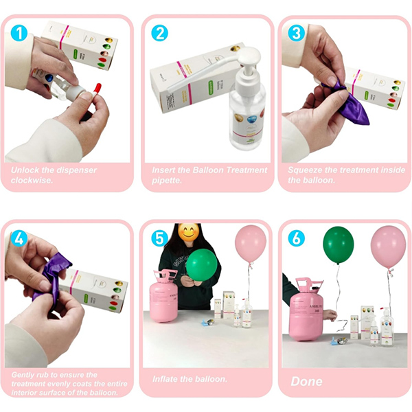 Tento ochránce balónu helia vyrobeného v Číně je k dispozici ve dvou velikostech: 100 ml a 500 ml. Zahrnuje dávkovač čerpadla pro snadnou aplikaci. Jedna lahve helia chrániče helia balónu může vyplnit 65-70 10-palcových nebo 12palcových latexových balónů a prodlouží dobu jejich letu. Tato tekutina chrániče balónu helia je navržena tak, aby zlepšila pohyblivou dobu latexových balónků, což zajišťuje, že vaše dekorace trvá déle a udržuje si vizuální přitažlivost během události. Naše ultra vysoká plovává řešení poskytují bezkonkurenční vysoký výkon plováku, což umožňuje plat latexových balónů celé dny. Tento prodlužovač helia zajišťuje, že vaše strana dekorace bude i nadále používána od začátku do konce, což snižuje potřebu častého výměny.