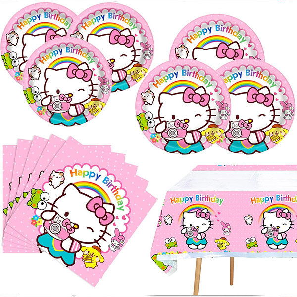 1) Pozadí: Pozadí Hello Kitty, primárně v teplých tónech, dodají každé narozeninové oslavě nádech rozmaru. Hodí se také jako fotokulisy, dekorace na stůl nebo dekorace na jeviště.