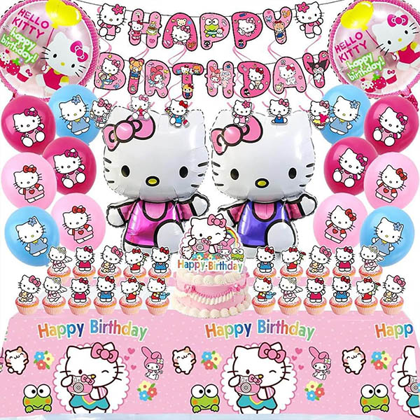 Tato sada latexových balónů s tematikou Hello Kitty se skládá z banneru Happy Birthday, nejvyšší dekorace dortu, latexového balónu a horní dekorace košíček. Všechny dekorace v tomto balíčku jsou vyrobeny z vysoce kvalitních materiálů, s jasnými barvami a krásnými vzory. Materiál je silný a není snadné poškodit, což může zajistit, aby dekorace v balíčku zůstaly v dobrém stavu během oslavy akce. Ať už se jedná o oslavu, narozeninovou párty nebo zábavnou párty, tato sada večírku s tématem kreslených je ideální.