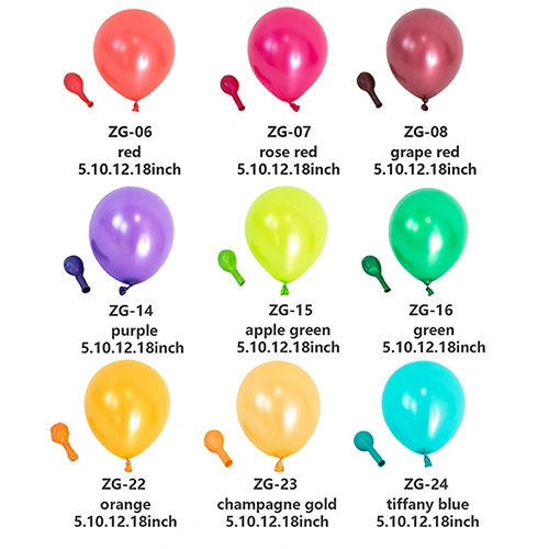 Perlové balónky:S měkkým, hladkým povrchem a třpytivým perlovým práškem se tyto balónky vyznačují nejjemnějšími a nejživějšími barvami, díky čemuž jsou ideální pro zdobení luxusních událostí, jako jsou svatby a Valentýn.
