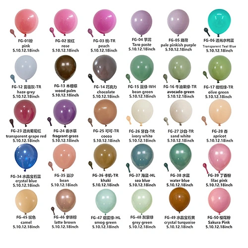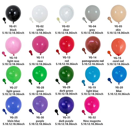 Latexové balónky jsou široce používané dekorativní a zábavní předměty. Tyto balónky jsou velmi oblíbené při různých příležitostech pro jejich různé barvy a způsoby použití. Od matné červené, žluté, modré a zelené přes retro růžovou a fialovou až po metalické tóny, jako je zlatá a růžová, mohou vysoce kvalitní balónky vytvářet překvapivé vizuální efekty a uspokojit potřeby různých scénářů.