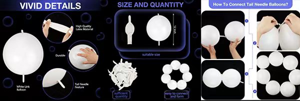 Ať už se jedná o narozeninovou oslavu, svatbu, oslava nebo jiná příležitost, spárováním balónků stejné barvy nebo jiných barev, můžete vytvořit elegantní atmosféru, po které toužíte. Budou to perfektní ozdob pro výročí, Halloween, dětské uvítací večírky, vánoční večírky nebo jinou událost. Link Balóny jsou ideální volbou pro vytvoření jedinečné atmosféry a přitahování pozornosti.