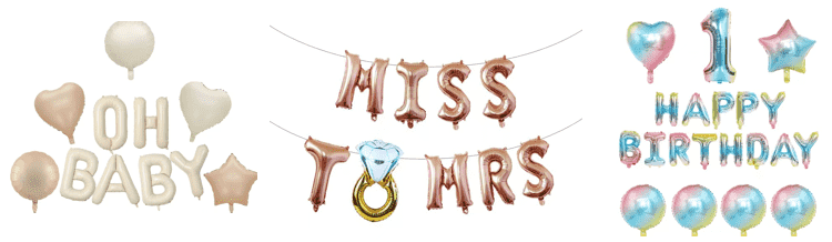 Balón fólie s dopisem je porovnáván s jinými tvary lásky fólie, hvězdy, karikatury a loga, které mohou udržovat sjednocenou texturu a vyhnout se materiální směsi a nepořádku. Současně je téma posíleno pomocí modelování dopisů, které je vhodné pro oslavy narozenin a podnikové aktivity.