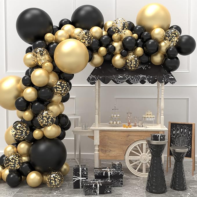 Tato narozeninová sada kovových balónků obsahuje 10palcové, 12palcové, 18palcové a 36palcové kovové zlaté balónky a kovové černé balónky a 22palcový fóliový zlatý balónek ve tvaru hvězdy a fóliový balónek k narozeninám. Instalace je pro začátečníky snadná a lze jej nafouknout vzduchem nebo héliem. Navíc si zákazník může přizpůsobit barvu, kterou preferuje, a upravit si jej podle své potřeby.