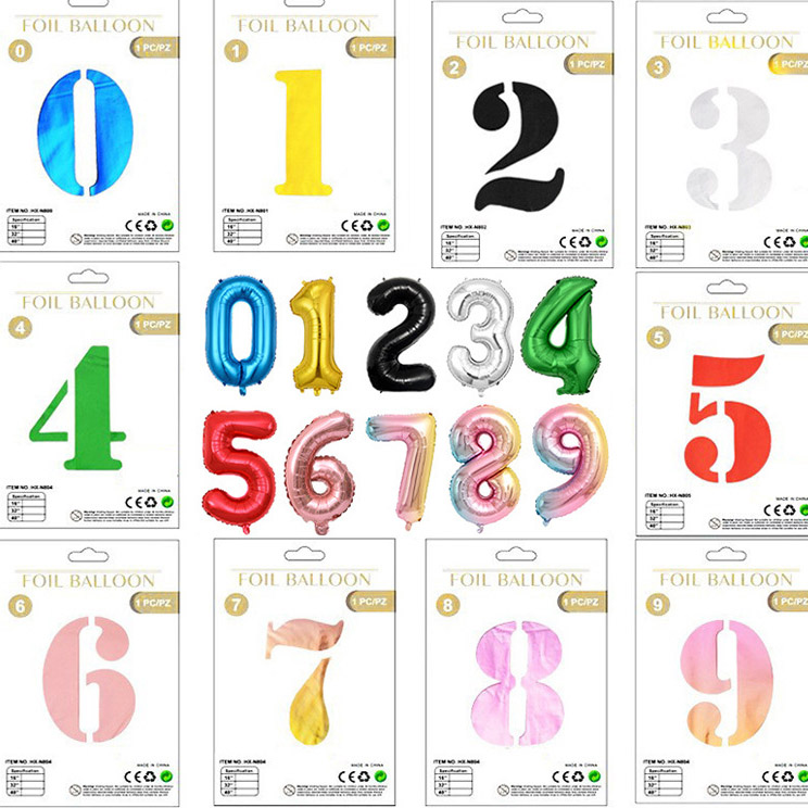 Číslo fólie Balóny: K dispozici ve velikostech 16 ", 32" a 40 ".