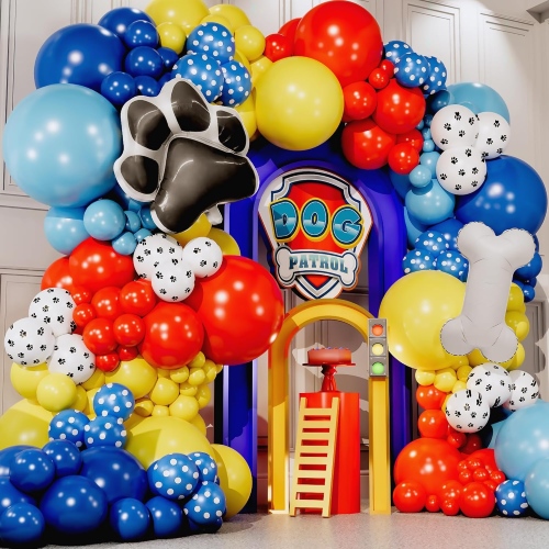 Sada balónového oblouku Paw Patrol věrně obnovuje klasické barevné palety Paw Patrol.