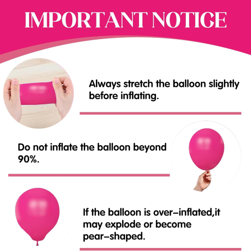 Sady girland s růžovými balónky a jejich příslušenství lze znovu použít. Pro nejlepší vizuální efekt doporučujeme pro každou událost použít nové balónky.