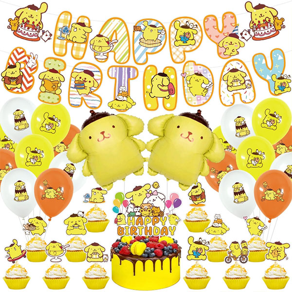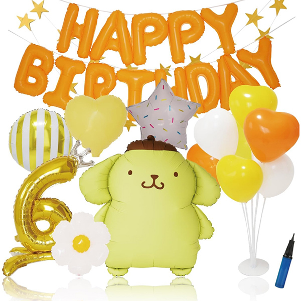 NiuN® Balloon Factory také spárovala párty sadu pro latexový balónek s potiskem PomPomPurin, který obsahoval banner k narozeninám, toner na dort, latexový balónek s potiskem PomPomPurin, topper na košíčky a další. Obrázky na těchto dekoracích jsou barevné a využívají technologii tisku šetrnou k životnímu prostředí, aby účinně přitáhly pozornost a zvýšily vizuální přitažlivost večírku. Tato sada dekorací je navržena tak, aby se dala snadno sestavit, aniž byste museli trávit spoustu času, a vy se můžete bavit s dětmi. Narozeninový banner lze snadno zavěsit na strop nebo stěnu, banner je barevný a balónek se snadno nafoukne. Ozdoby na dort jsou krásně vyrobené. S těmito potřebami pro narozeninovou oslavu můžete během chvilky zahájit úžasnou narozeninovou oslavu.