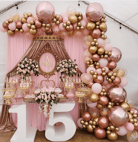 Sada girland s balónkem z růžového zlata je jednou z nejoblíbenějších a vysoce hodnotných luxusních explozí v naší sérii dekorací balónků. Je vhodný pro různé dekorativní příležitosti a má plnou atmosféru.
