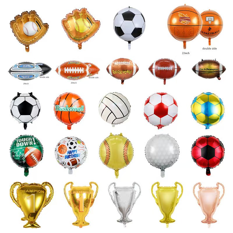 Design pokrývá modelářské sportovní vybavení, basketbal, fotbal, činky, trofeje, siluety sportovních postav, „WIN“, „GOAL“ a „CHAMPION“ a další motivační písmena. Jediný balón velké velikosti (18-36 palců) nevyžaduje složité párování a může se stát vizuálním ohniskem, když je zavěšen ve středu nebo na vstupu aktivity. Je zvláště vhodný pro scény, jako je fandění velkým akcím, venkovní sportovní aktivity a sportovní hry v areálu, okamžitě zapálí nadšení ze scény.