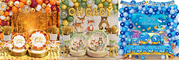 Strany jsou primárním použitím pro nádobí NIUN® Paper. Spárování se sadou tematických balónů může vylepšit téma. Každý girland balón má odpovídající téma a nabízí řadu barev, které se dokonale koordinují s různými sadami papírových večírků. Párovací papírové nádobí s odpovídajícími tematickými styly balónů girland vytvoří oslnivou párty!