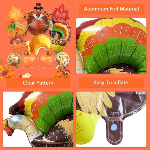 - Další stylové fóliové balónky (kulaté fóliové balónky na Den díkůvzdání a fóliové balónky s dopisem na Den díkůvzdání) se dodávají v různých velikostech