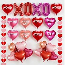 Dívčí párty balíček: fóliové balonky XOXO + červené balonky na rty + bannery s písmeny + střapcové ozdoby. Je určen především pro setkání nejlepších přátel, single party a předsvatební večírky a nabízí módní fotografie.